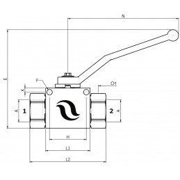 Montaggio: Leva in posizione 2 le uscite sono aperte e consentono liberamente il passaggio del flusso. Leva in posizione 1 le uscite sono chiuse e bloccano completamente il flusso. Collegare indifferentemente le due uscite al ramo da intercettare. La leva ruota di 90°.
