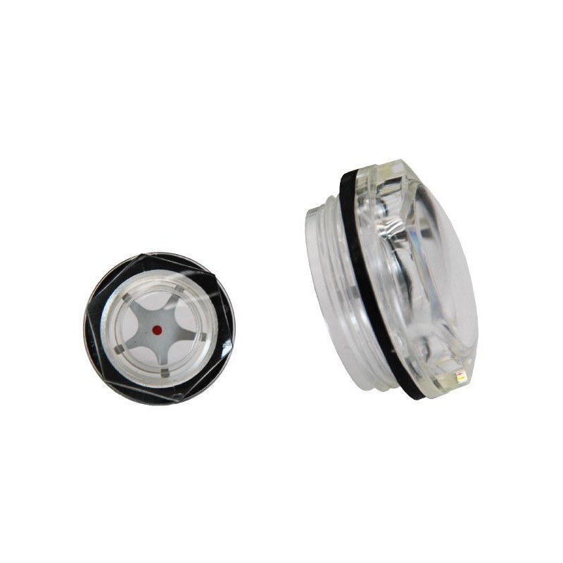 FILETTATURA 1/2 - Spie livello olio a testa esagonale con attacco filettato realizzate in lega di alluminio. - Visore in poliammide trasparente speciale compatibile con oli industriali, fluidi idraulici, benzina, gasolio e liquidi contenenti glicole. - Max Pressione di esercizio consigliata 5 Bar.- Schermo di contrasto interno in alluminio verniciato...