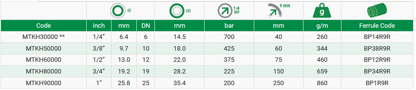 Le tubazioni della serie MTKH Oilproof Cover sono state create per uso oleodinamico e pneumatico (versione microforata) ad altissima pressione in cui è richiesta una buona flessibilità della tubazione.