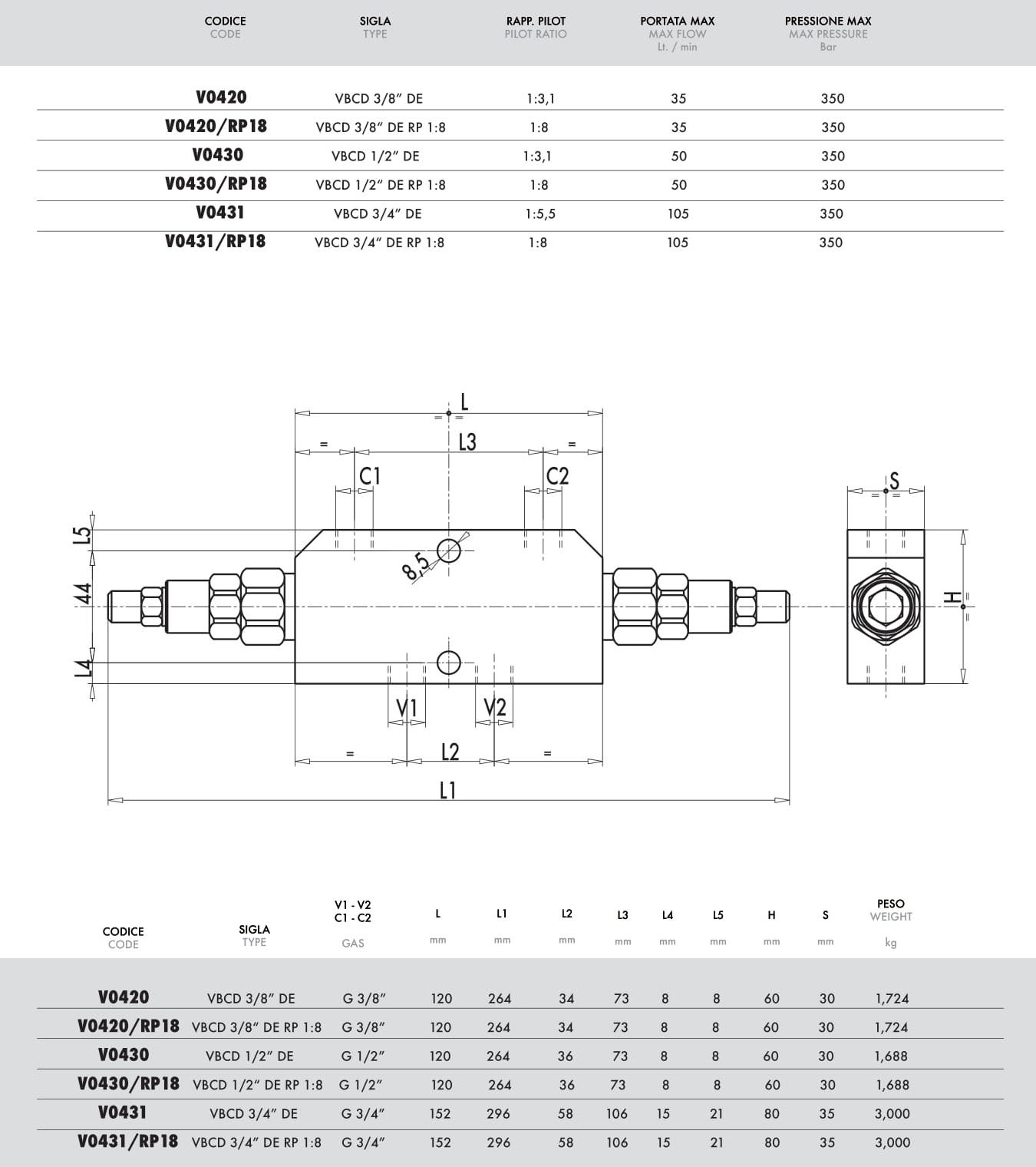 Impiego Valvola utilizzata per controllare il movimento e il blocco dell’attuatore in entrambe le direzioni realizzando le seguenti funzioni:• discesa controllata del carico che non sfugge trascinato dal proprio peso, in quanto la valvola non consente alcuna cavitazione dell'attuatore• limitazione della pressione massima in caso di urti dovuti al carico,...